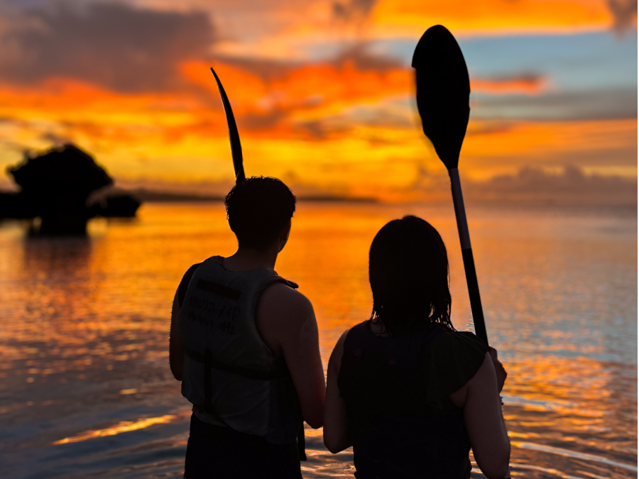 恩納村【サンセットシーカヤック】沖縄の夕日に癒される|カップル・女性に人気|レンタル品・駐車場・温水シャワー・ドライヤーすべて無料