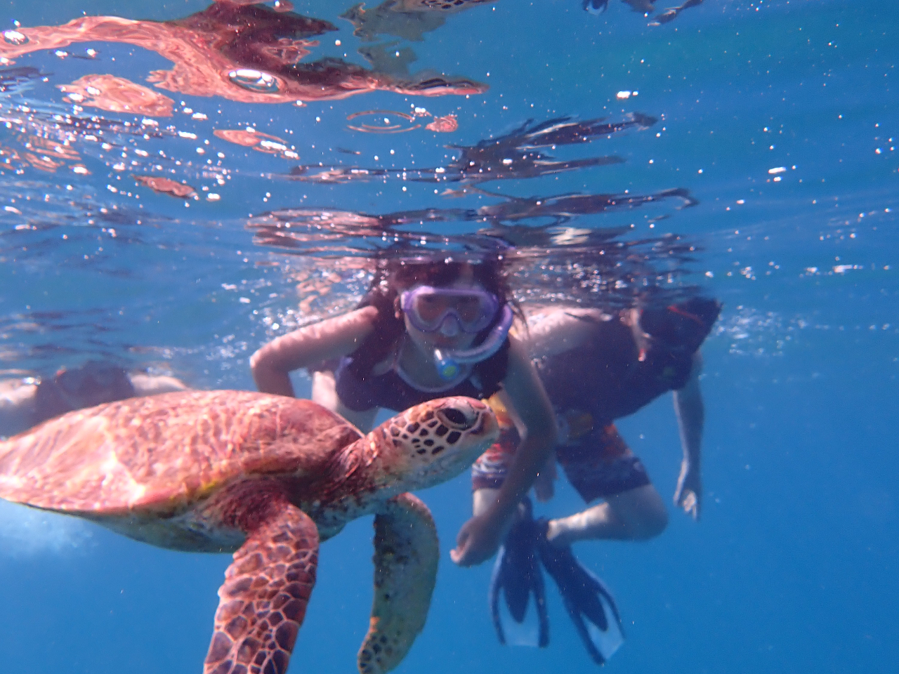『海ガメ&熱帯魚2ビーチよくばりシュノーケリング』海ガメ専門ショップだから遭遇率100%更新中!2.5時間で海ガメ2ショット写真も♪ファミリー・カップル・女性におすすめ!