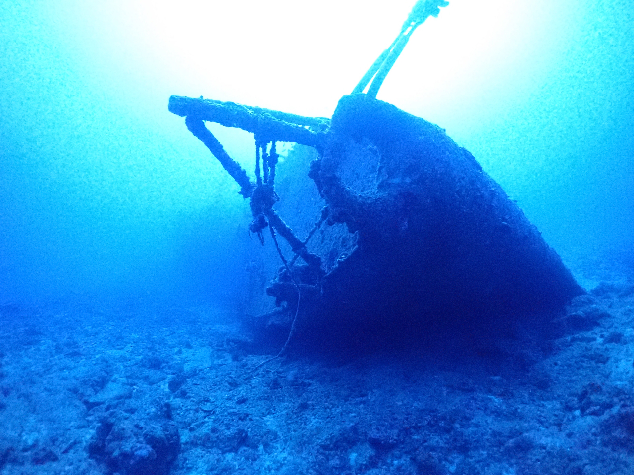 水深40m前後に横たわる全長約106mの迫力満点の沈没船を見に行きませんか?