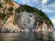 夕暮れ時、カヤックで海上に漂いながら水平線に沈む夕陽を眺めます。周辺ではヨーロッパ地中海の海岸で見られるような、白い岩肌の溶岩の神秘的な絶景が広がっています。