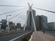 この橋は、中央に聳え立つ2本の白い主塔が、太いゲーブルで橋桁を吊っている素晴らしい姿の斜張橋です。
