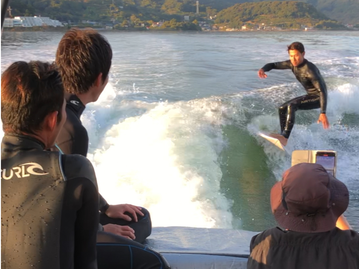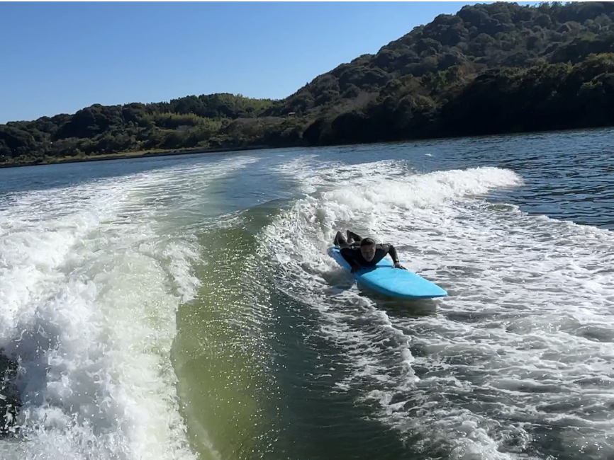 ボートが起こす波は調整が可能!お一人お一人のレベルにあわせて指導していきます♪