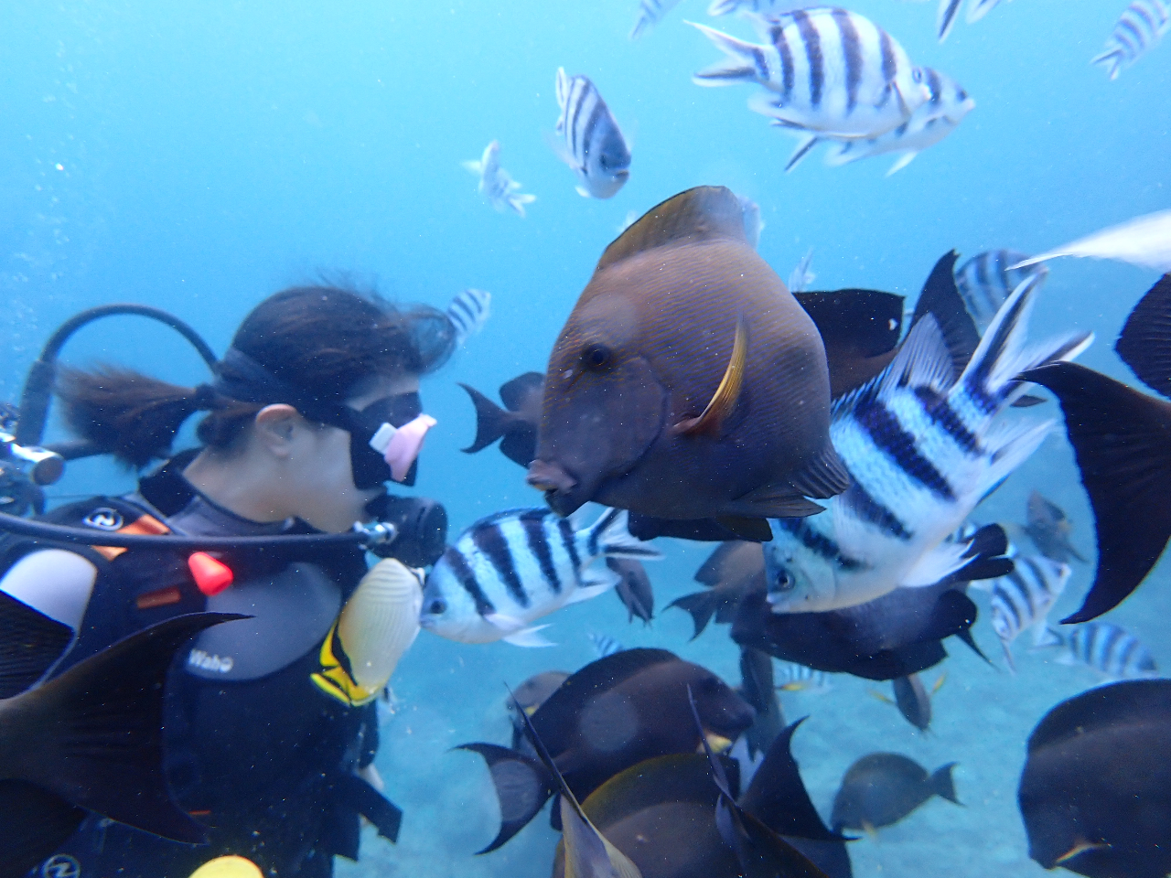 奇麗なサンゴ軍、クマノミ親子が貴方のお越しを、待っていますよ。