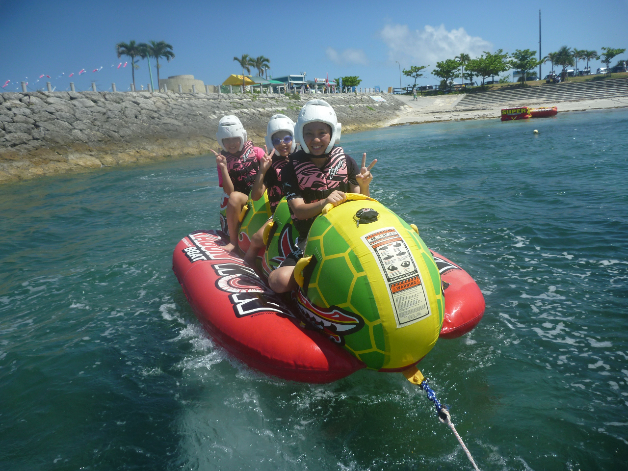 幅広く楽しめる、マリンアクティビティーです。バナナボート・チュービング