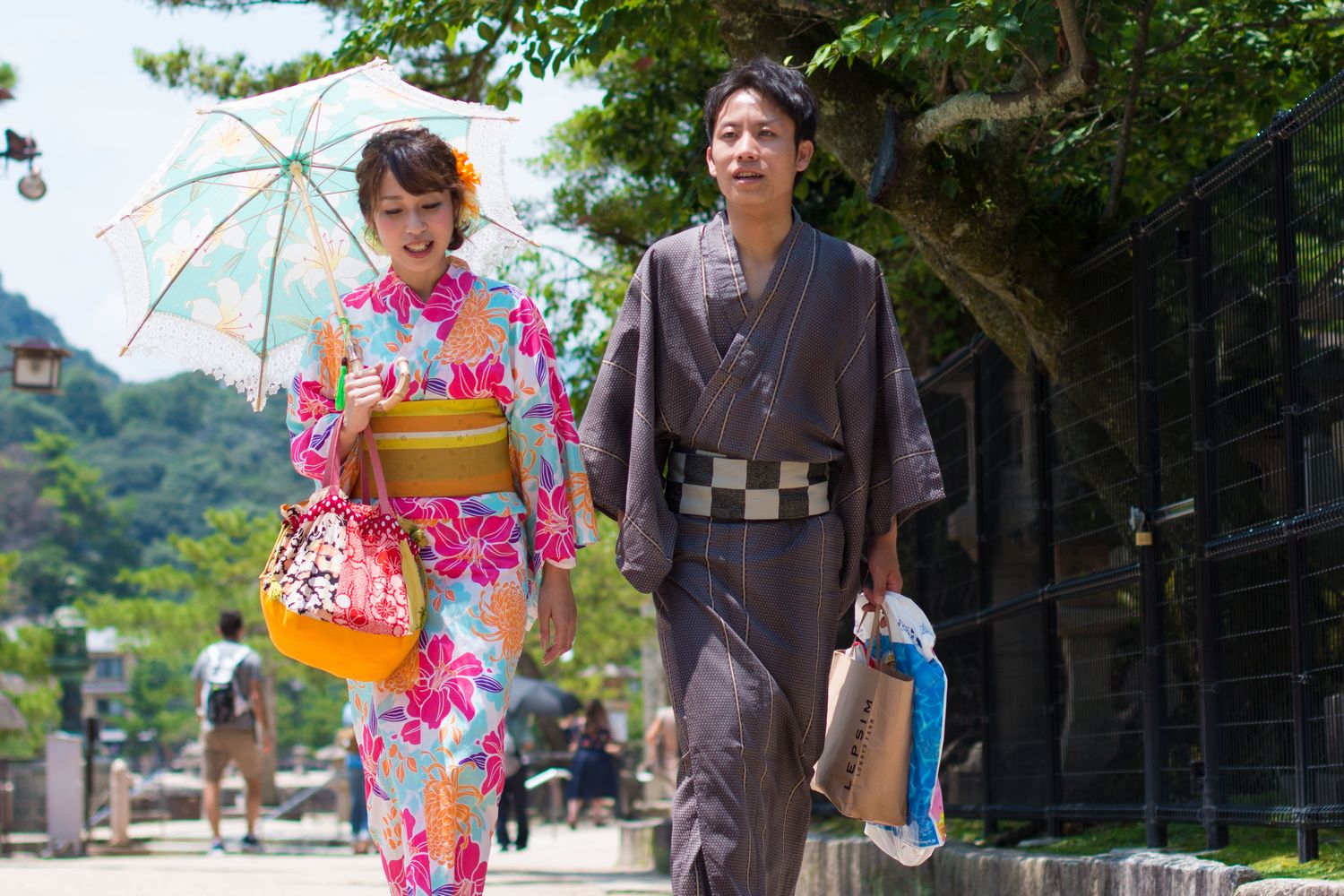 カップルで世界遺産 宮島を着物・浴衣をレンタルしてご散策するならこちらのプランがお勧めです。広島の「とうかさん」や夏の花火大会も、着物や浴衣なら、もっと楽しめます!