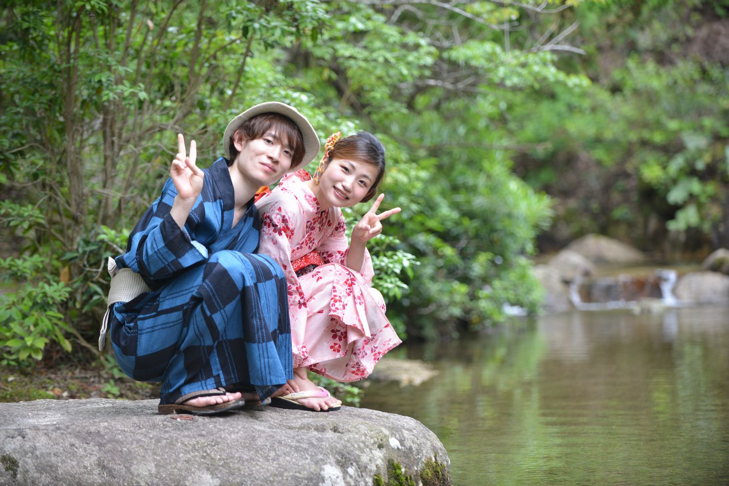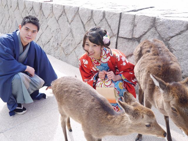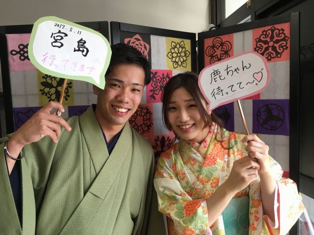 「みやじま小町」の可愛い、そしてカッコイイ着物や浴衣で、宮島や岩国錦帯橋を散策しましょう。カップルで、着物や浴衣を着て旅をもっと楽しもう!