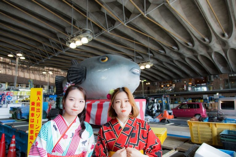 ・下関・唐戸市場より歩いて2分にある貸衣裳千景店でゆかたの着付け体験♪