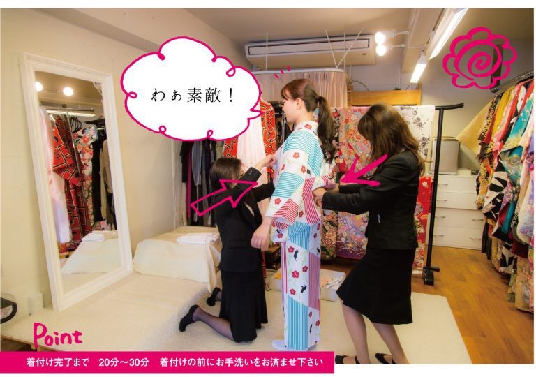 【下関・唐戸市場から歩いて2分】【着物レンタル&着付け 】【イベントに、旅行の記念に】夏は浴衣のお着付け体験♪【手ぶら来店OK】