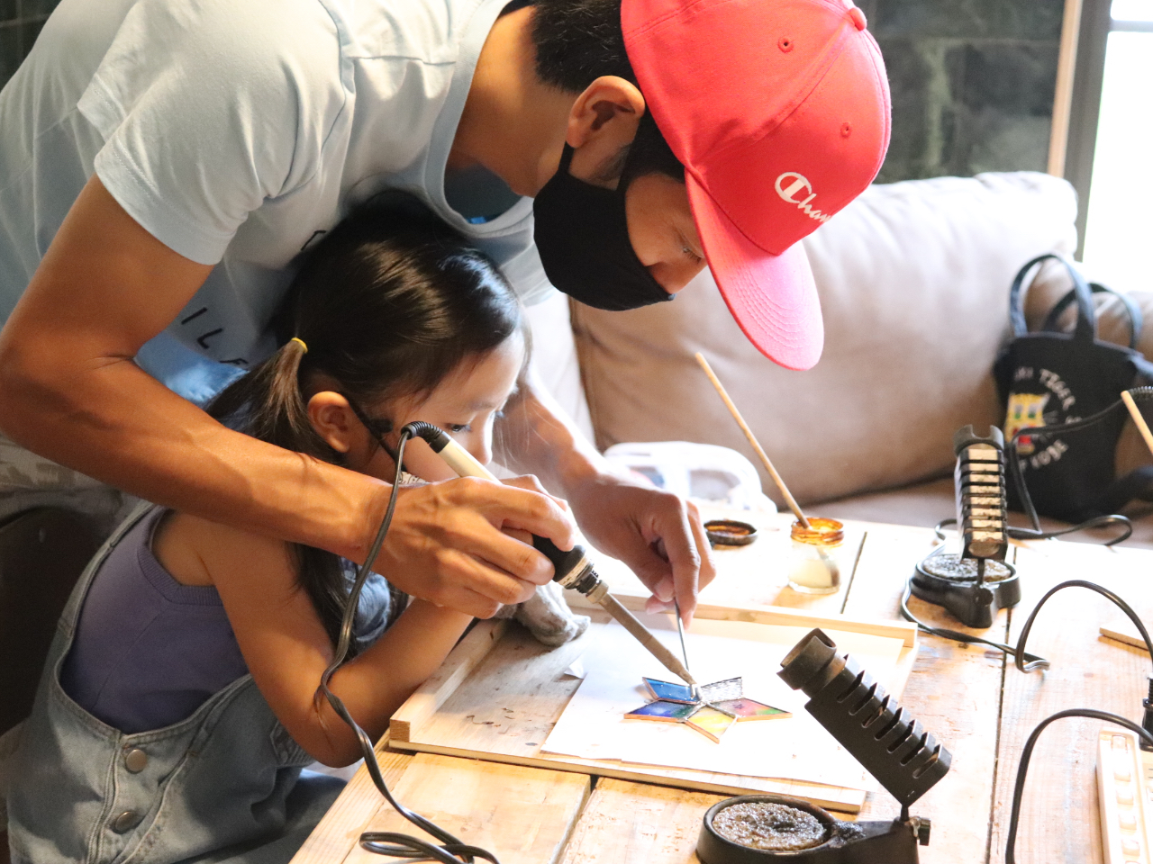 • ガラスを選び終わったらはんだづけです。初心者の方でも出来るように丁寧に教えますのでご安心下さい。