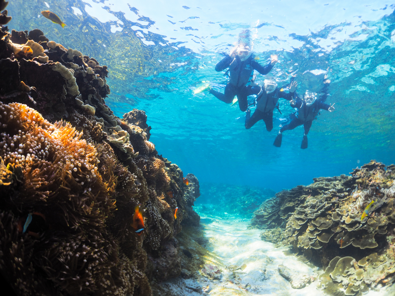 たくさんのサンゴとお魚のいる海でシュノーケリング♪