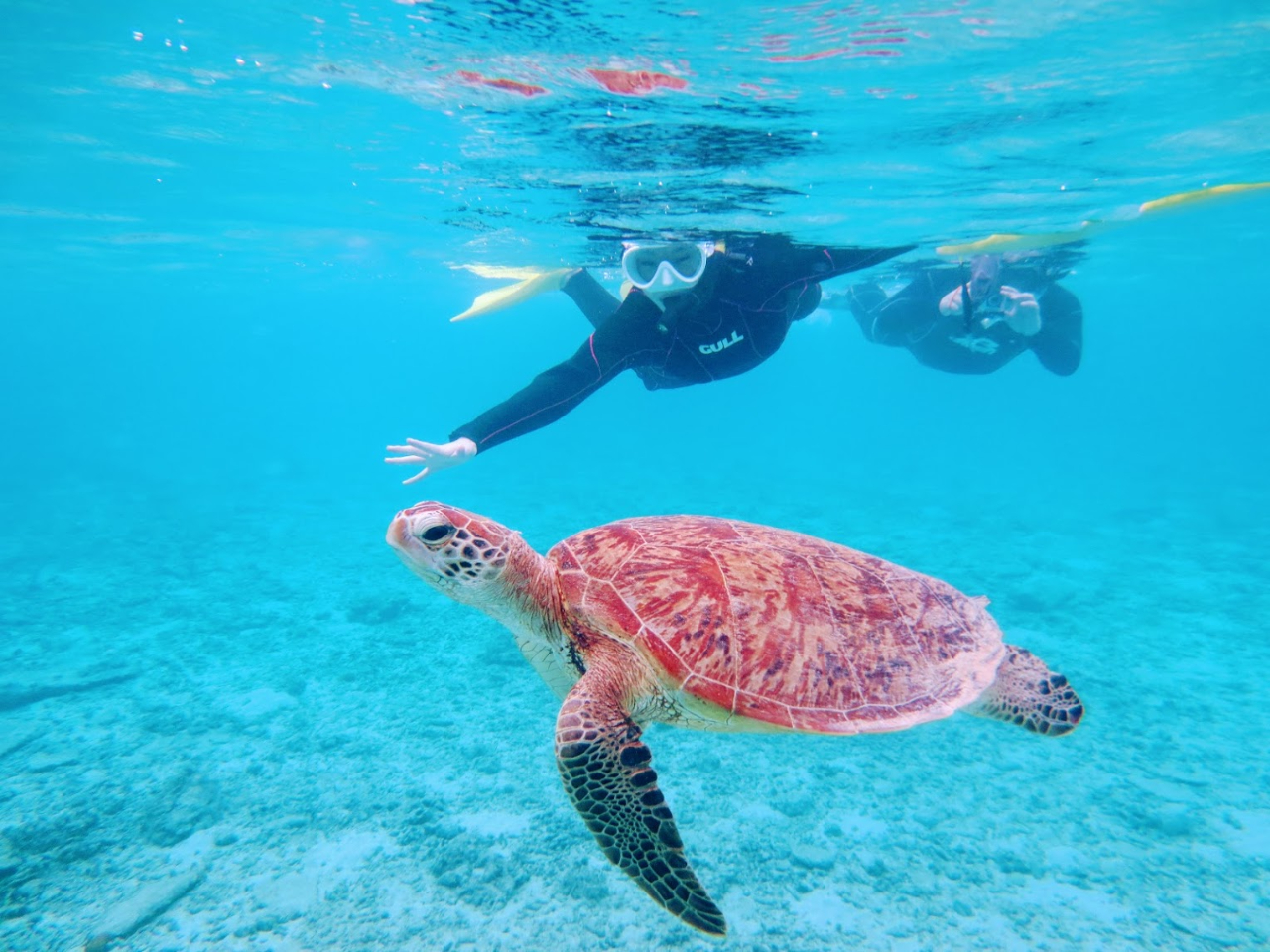 慶良間諸島の周辺にはアオウミガメが定住しており、スノーケリングで見られます!