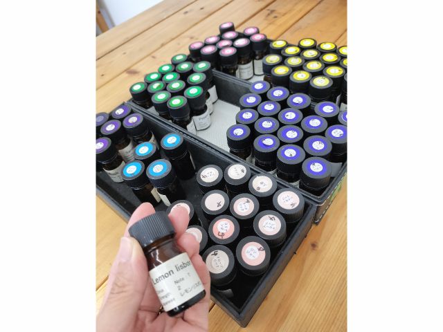 100種類の香りからオリジナルブレンド。リップクリームや香水などの小さいアイテムが1個作れるコースです。