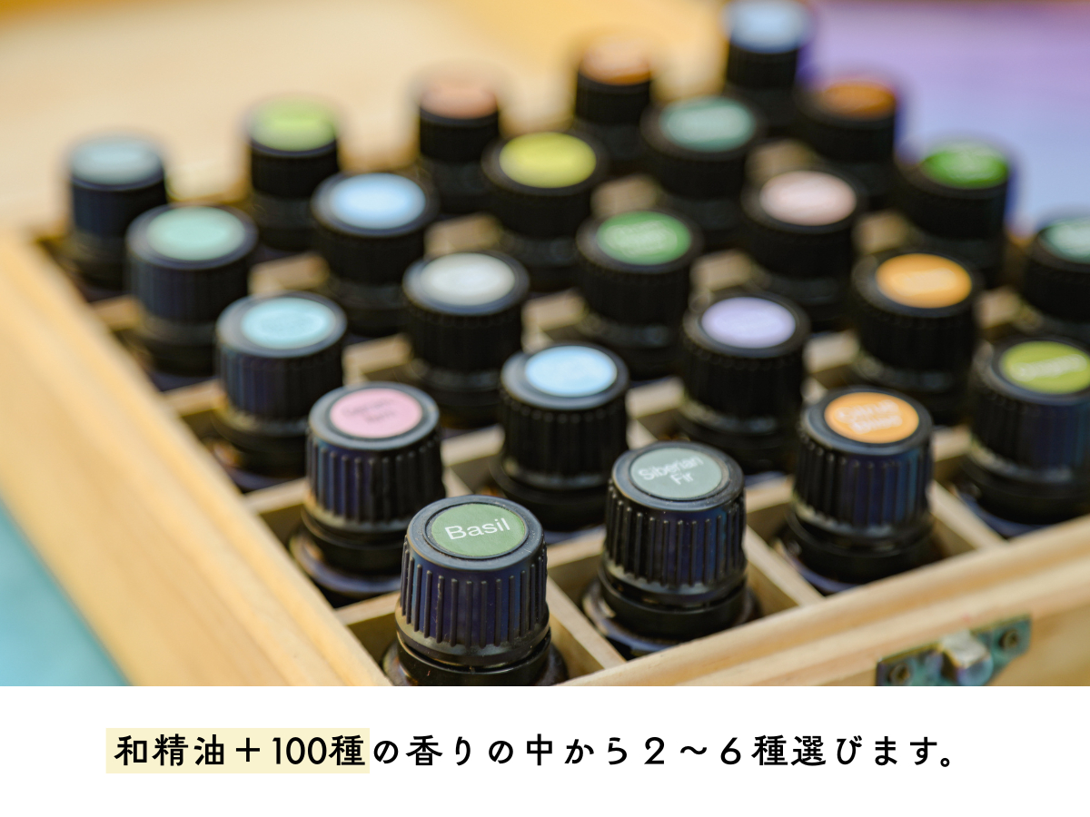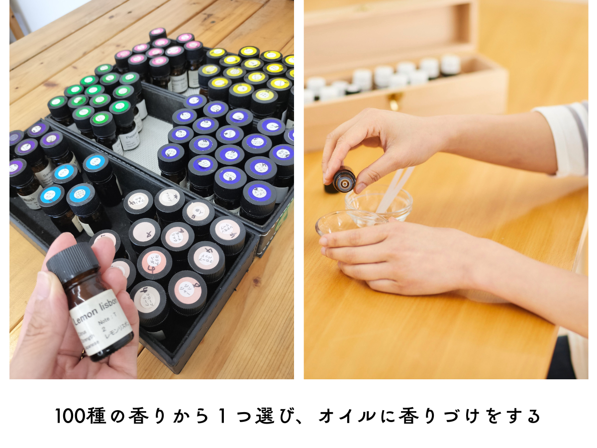 100種類を超える香りの中から、お気に入りの香りを一つ選び、アイテムを作成します。