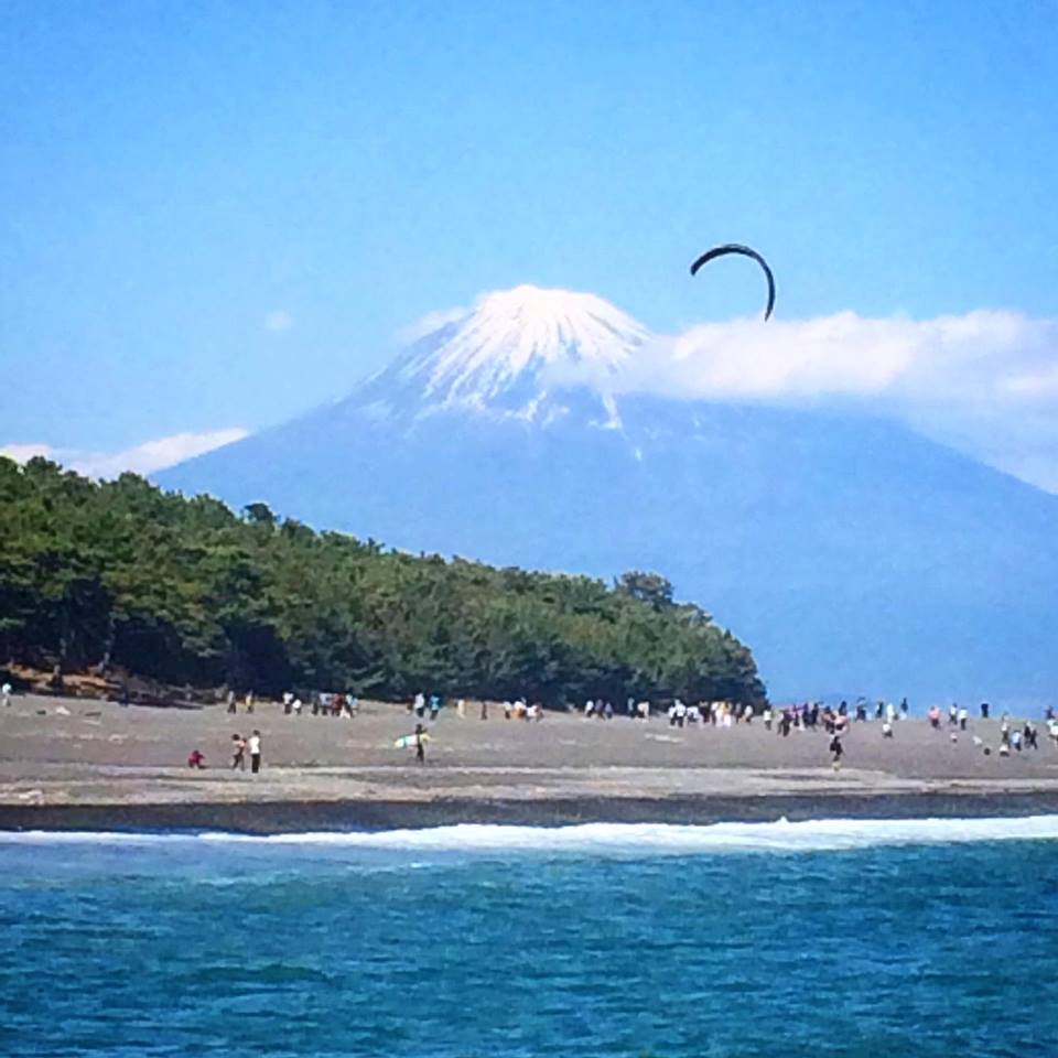富士山を一望しながら青い海原と緑の松原の絶景を楽しめることができるSUPカイトサーフィン体験です♪