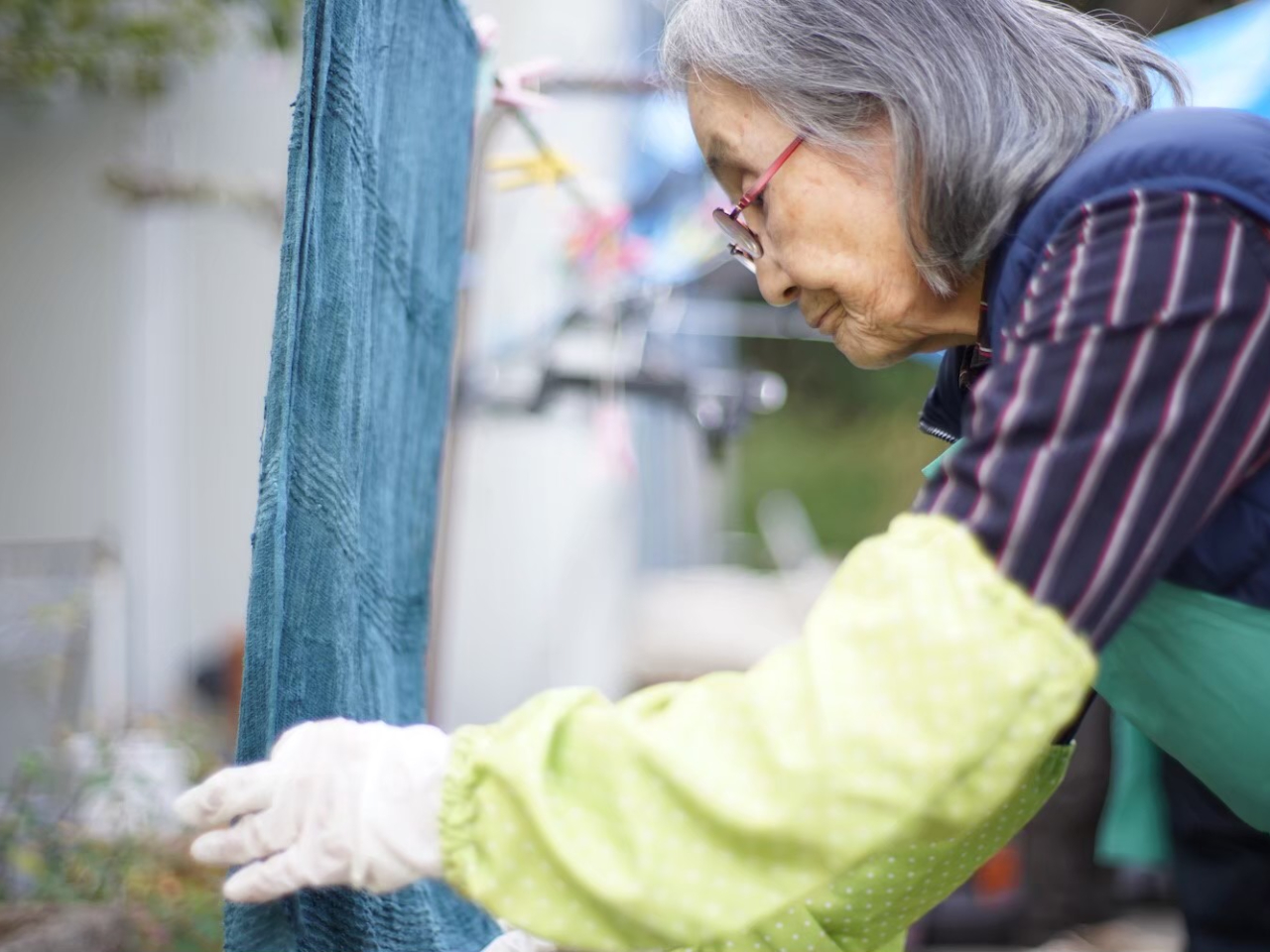 藍染め体験はもちろんのこと、どんぐり染め、柿渋染、5分で染まる特殊な染め方など、さまざまな染色体験が楽しめます。