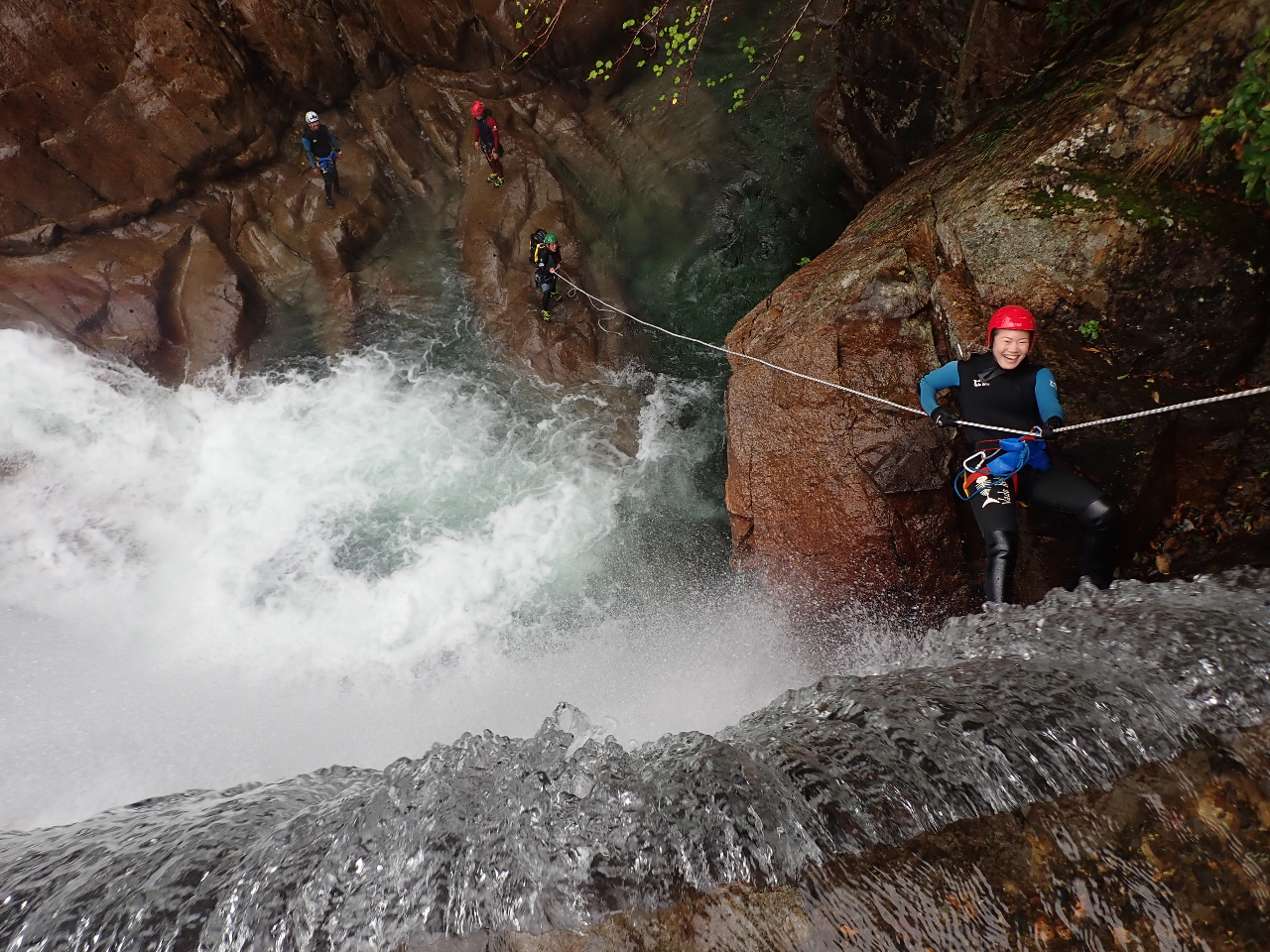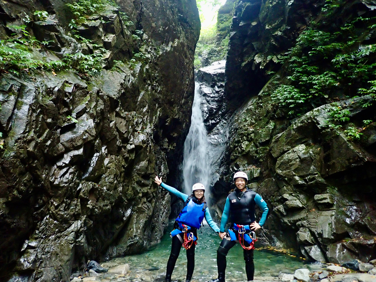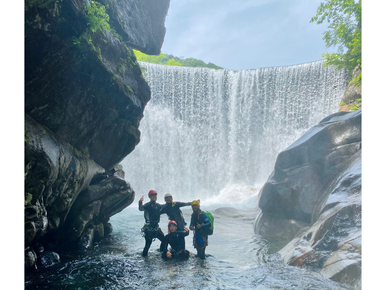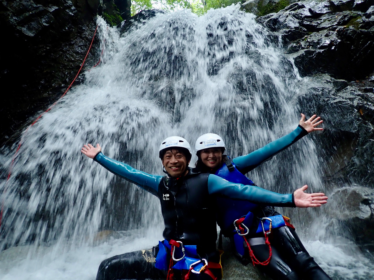 ※キャニオニングとは、専用装備を身につけてウォータースライダーの様に源流の水の流れの中を滑り降りたり、ジップラインで滝を降ったり等、自然の川地形を利用して楽しむレジャースポーツです。