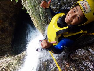 25mの滝を含むスライダー盛り沢山!半日コースでは物足りない、キャニオニングの全てを体験したい、探検好きの方におすすめ1dayコース!