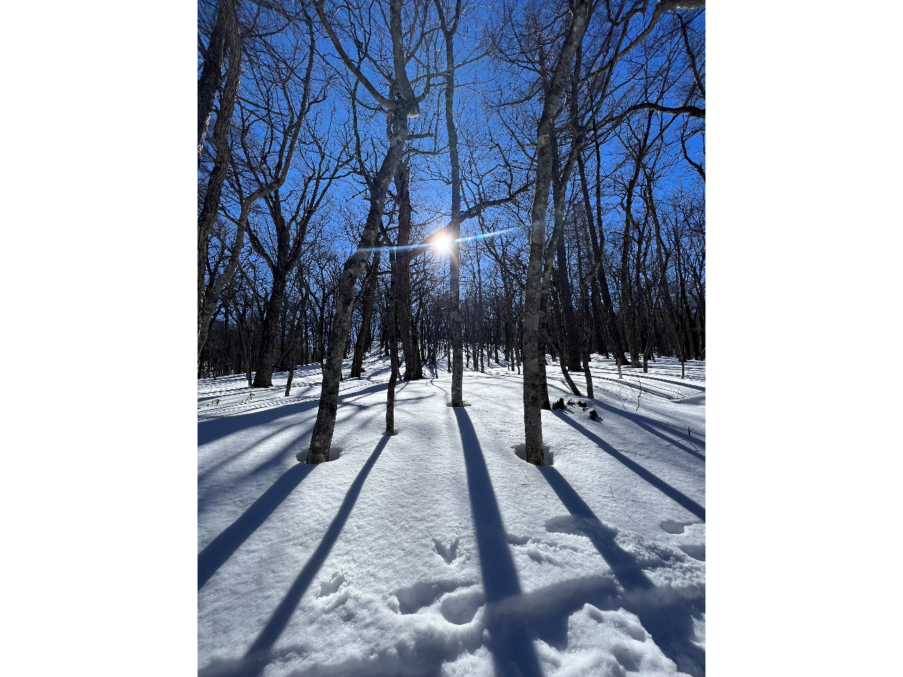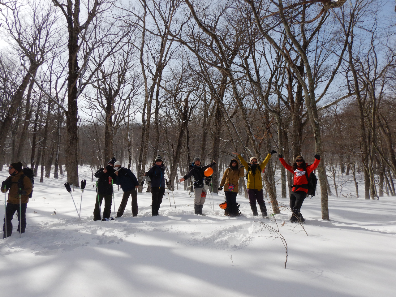 黒滝へ到着後は滝ををバックに写真を撮ったりランチをした後はいよいよ帰り、帰りは登りになりますが、スノーシューを履けば多彩なルートで歩くことが出来るので、のんびり歩いたり、時には直登してみたり、最後まで飽きることの無いように、その時々のお客様に合わせてツアーカスタマイズしていきます。