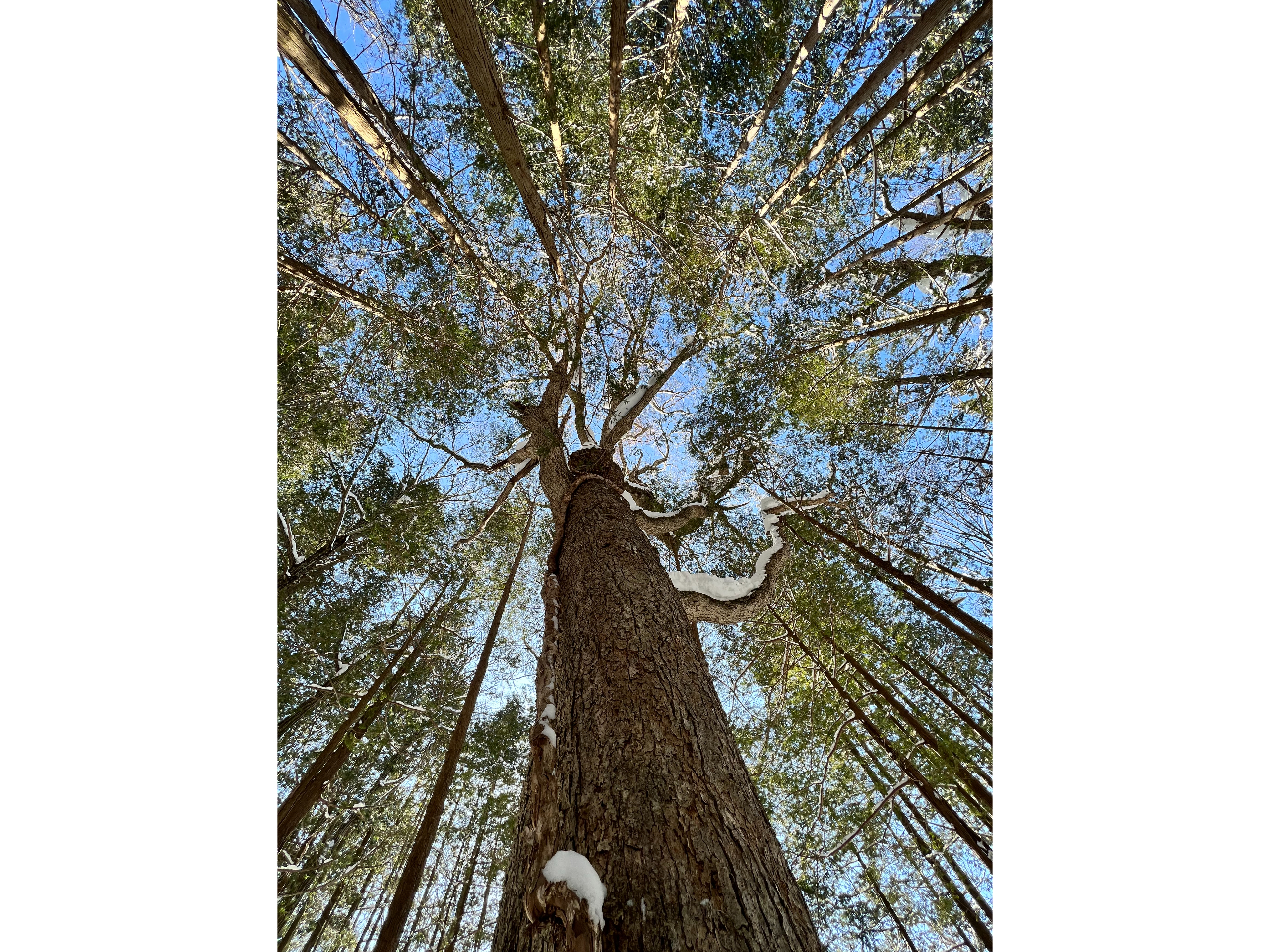 滝までの道のりは下り、倒木の1本橋で遊んだりシリセード(お尻で滑るソリあそび)などを織り交ぜながら真っ白な樹林帯を楽しみながら黒滝を目指します。