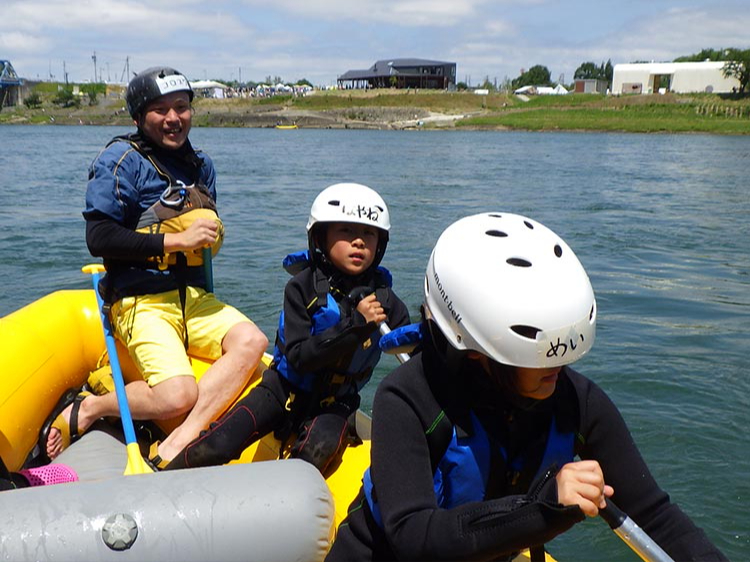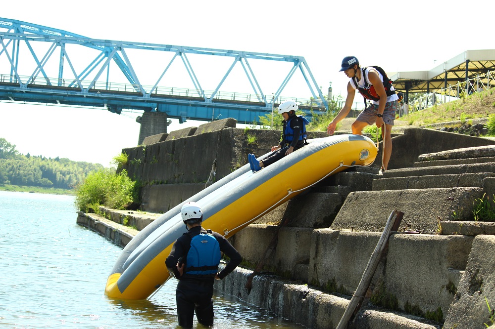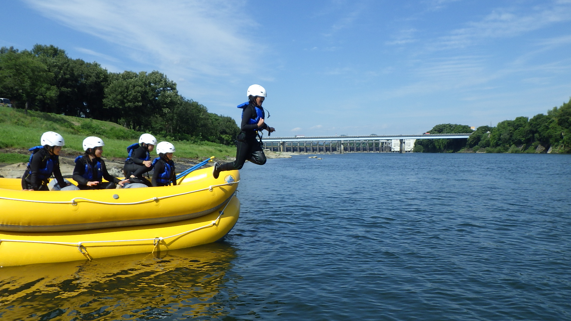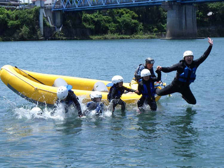 泳いだり、飛び込んだり、ボートを使った遊び(滑り台など)で、川に慣れていきます。