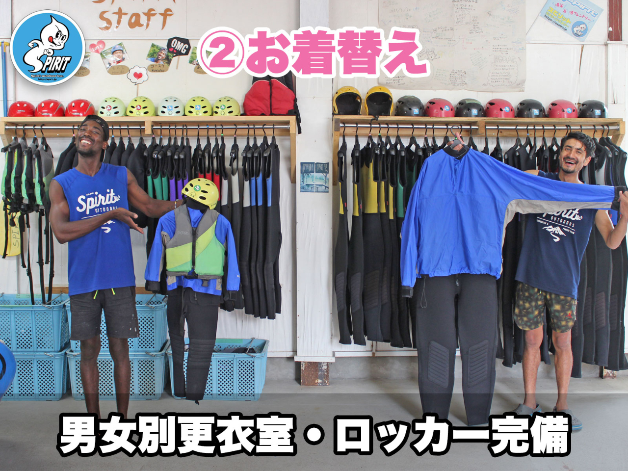 持ち物は、タオル、水着、短パン、Tシャツ、濡れても良い靴です。レンタルシューズもご用意しています。(プレミアムプラン無料)