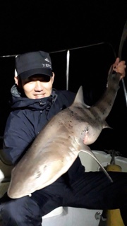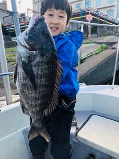 彼も人生初、60センチのシーバスを釣れてすごく喜んでいました!船酔いも全然しませんでした。