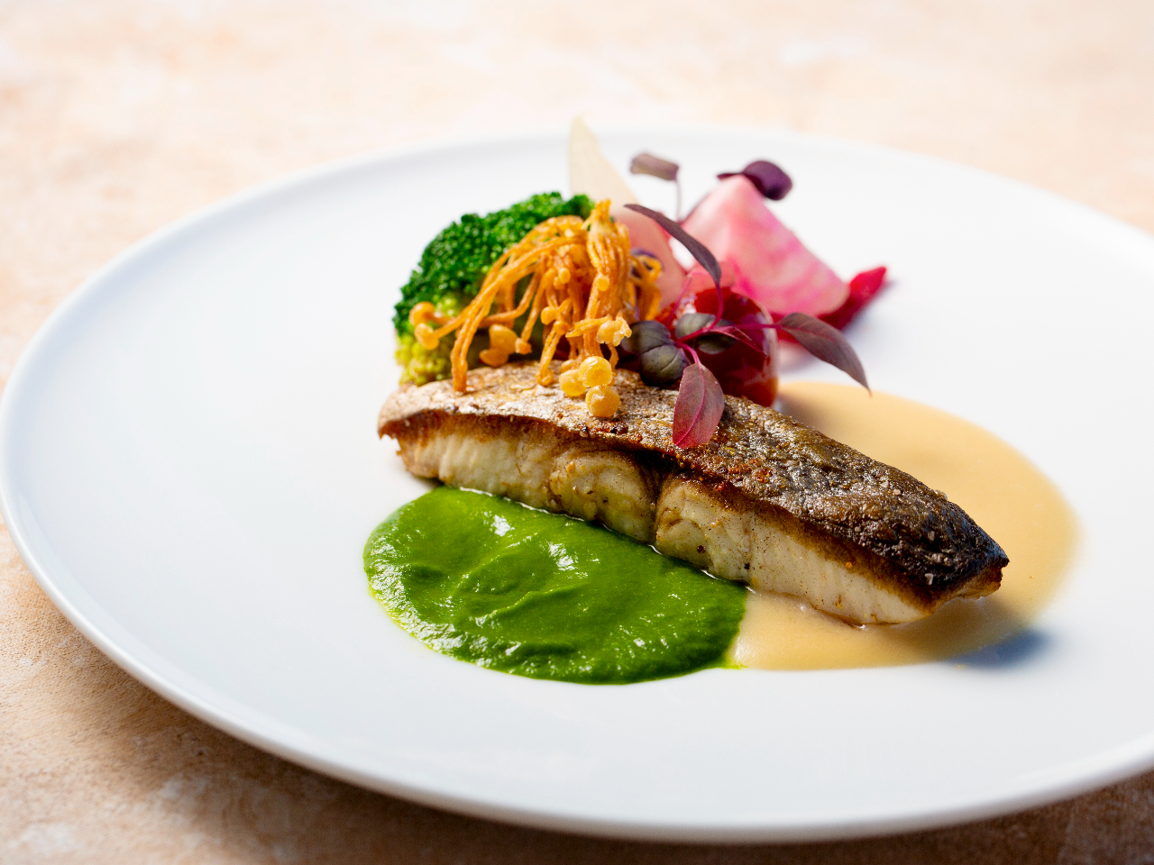 鮪頬肉のムニエル ブールブランソース デュクセルと卵黄クリーム