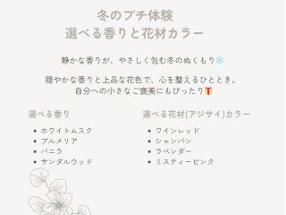 香りと花が織りなすリラックスタイムを、60分の手づくり体験でお楽しみください。