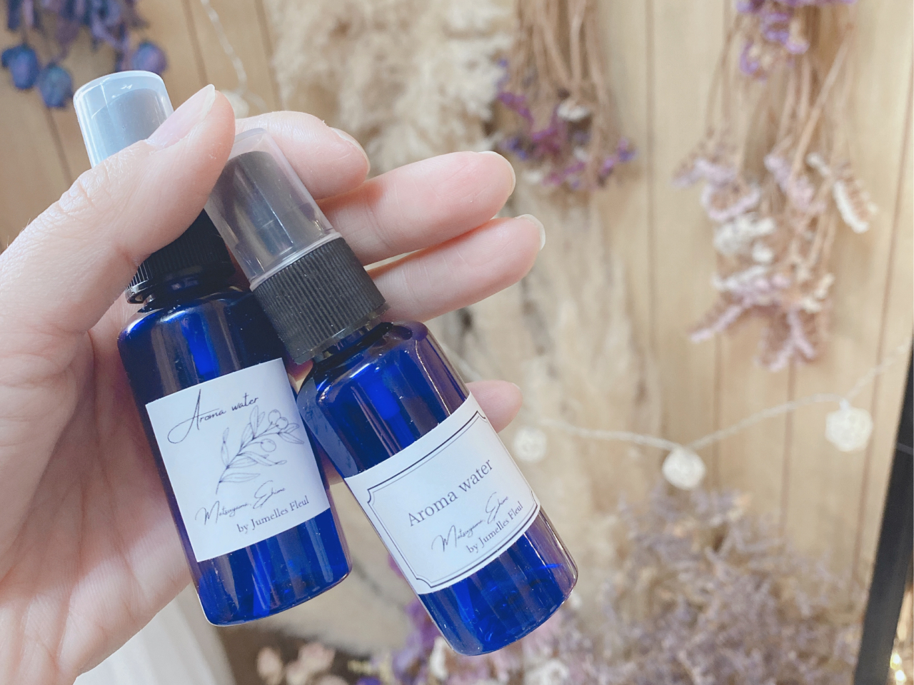 Bアロマスプレー作り・レシピを元に、好きな香りのアロマスプレーを作ります。アレンジも可能。