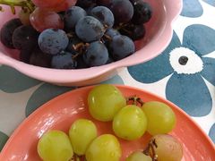 食べ放題のぶどうは、写真の紫系とグリーン系の2皿が最初にいただけて、その後のおかわりは、紫系のみです。お持ち帰りのぶどうのシャインマスカットは喉が痛くなる位の甘さがありました。ちょっと緑すぎたから甘くないかな?とも思いましたが、このシャインマスカットは最上級でした。2,000円×2人。じゃらん限定ポイント▲1,000円分、じゃらんクーポン▲400円を利用しました。実質支払は2,600円。1,000円×2人で2,000円分のぶどうをお持ち帰り。2人で600円で60分食べ放題の計算です。ぶどう園の方々はとても親切・丁寧です。