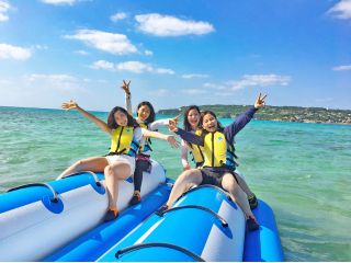 【沖縄・古宇利島・バナナボート】1グループ毎の貸し切りにてご案内!バナナボート15分ツアー カップル、女性、ファミリーに人気♪【直前予約可能】2026年6月30日まで