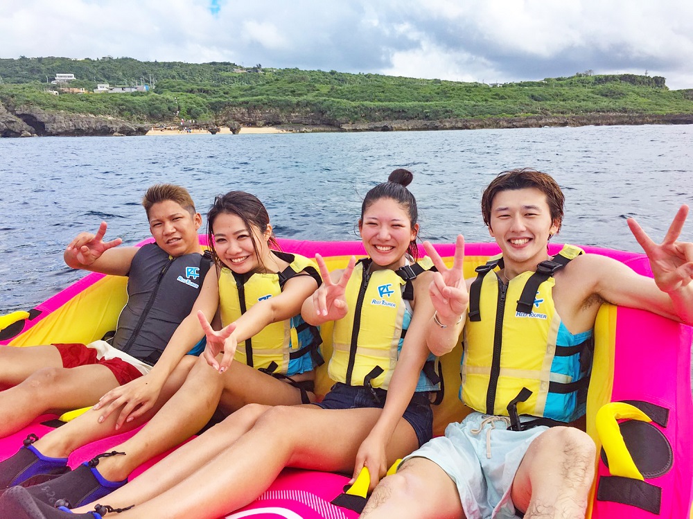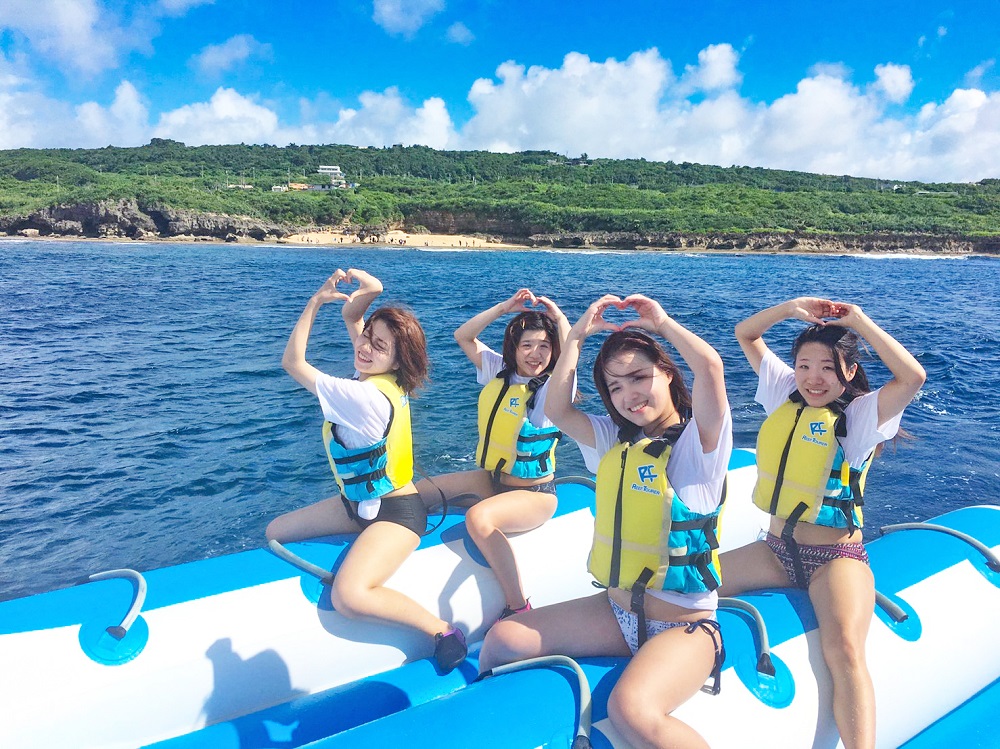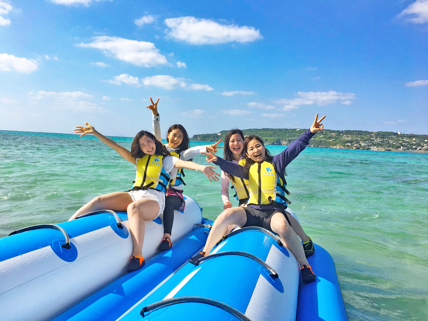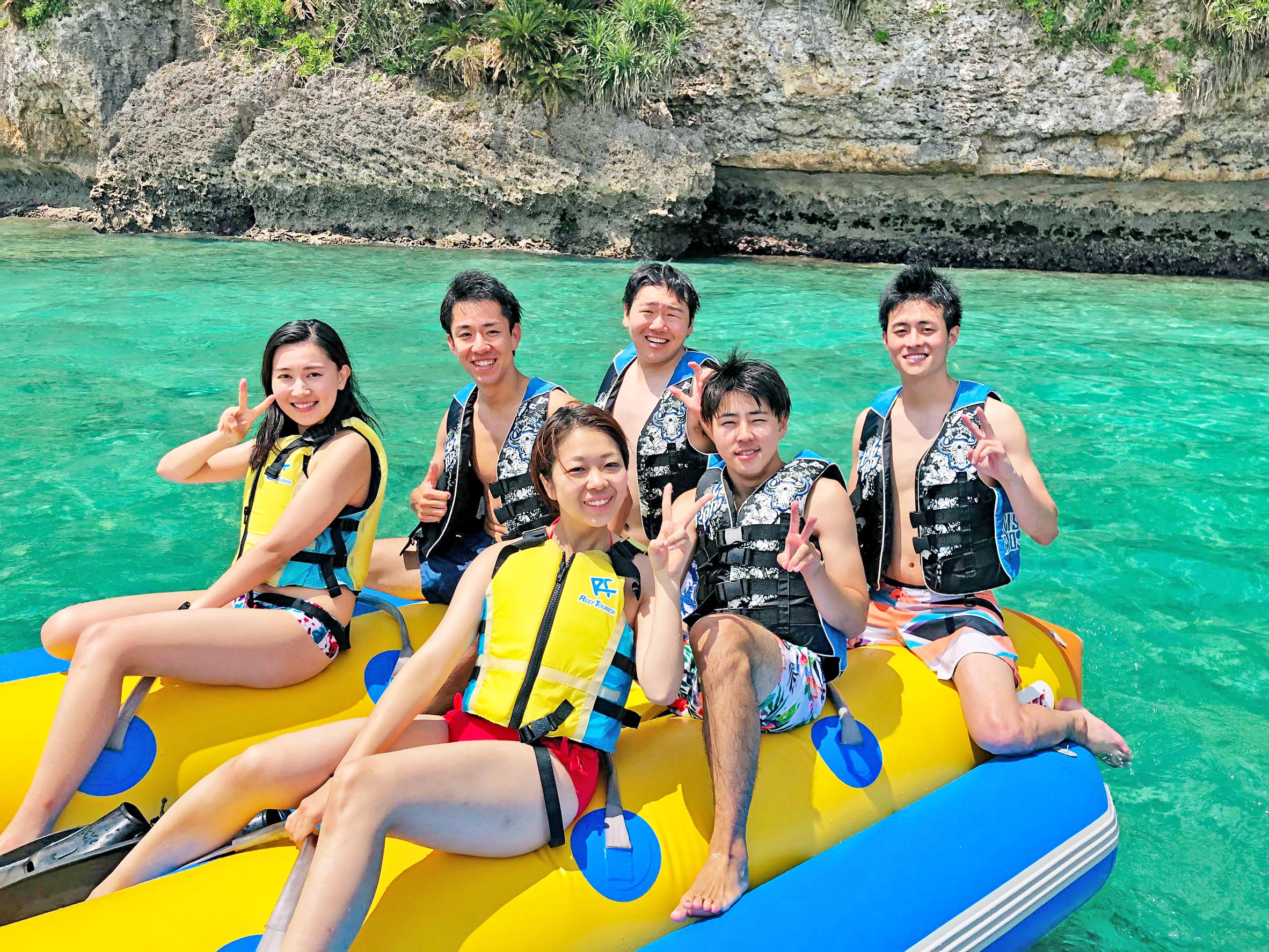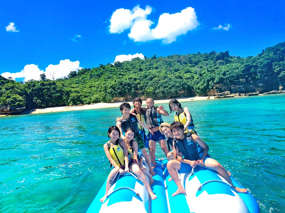 【沖縄・古宇利島・バナナボート】1グループ毎の貸し切りにてご案内!当店一番人気プラン!バナナボートで古宇利島一周プラン カップル、女性、ファミリーに人気♪【直前予約可能】2026年9月30日まで