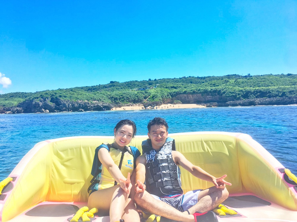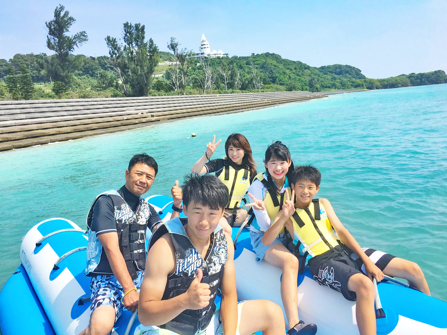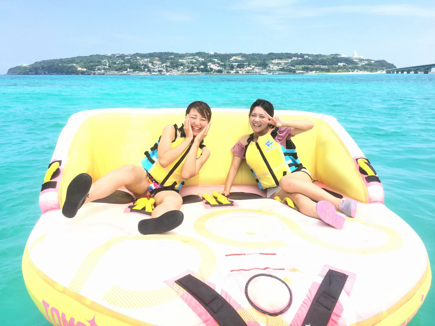 【沖縄・古宇利島・バナナボート】1グループ毎の貸し切りにてご案内!バナナボート15分ツアー カップル、女性、ファミリーに人気♪【直前予約可能】2026年6月30日まで