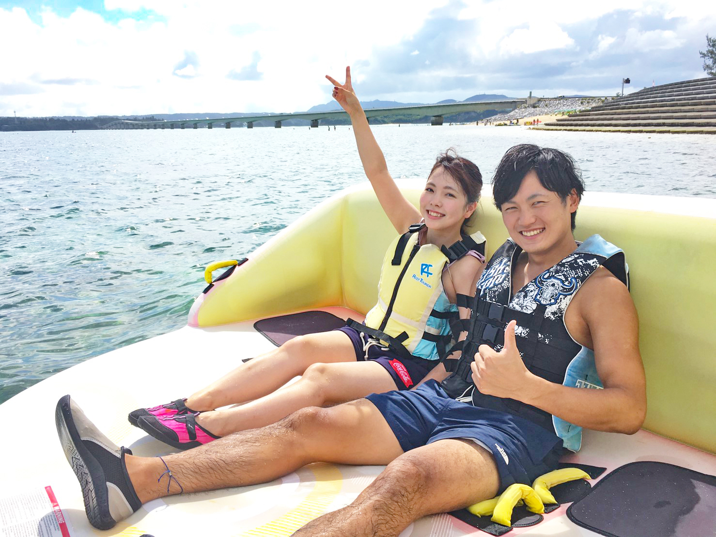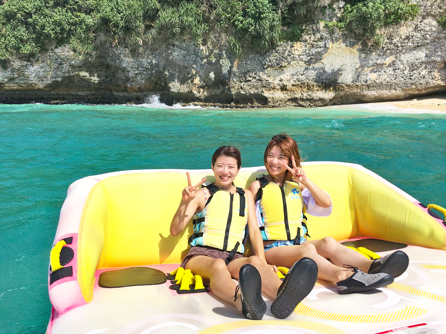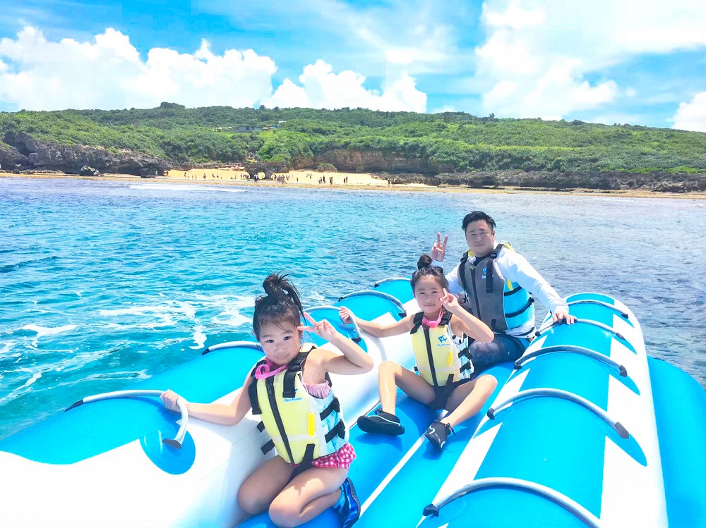 【沖縄・古宇利島・バナナボート】1グループ毎の貸し切りにてご案内!バナナボート15分ツアー カップル、女性、ファミリーに人気♪【直前予約可能】2026年6月30日まで