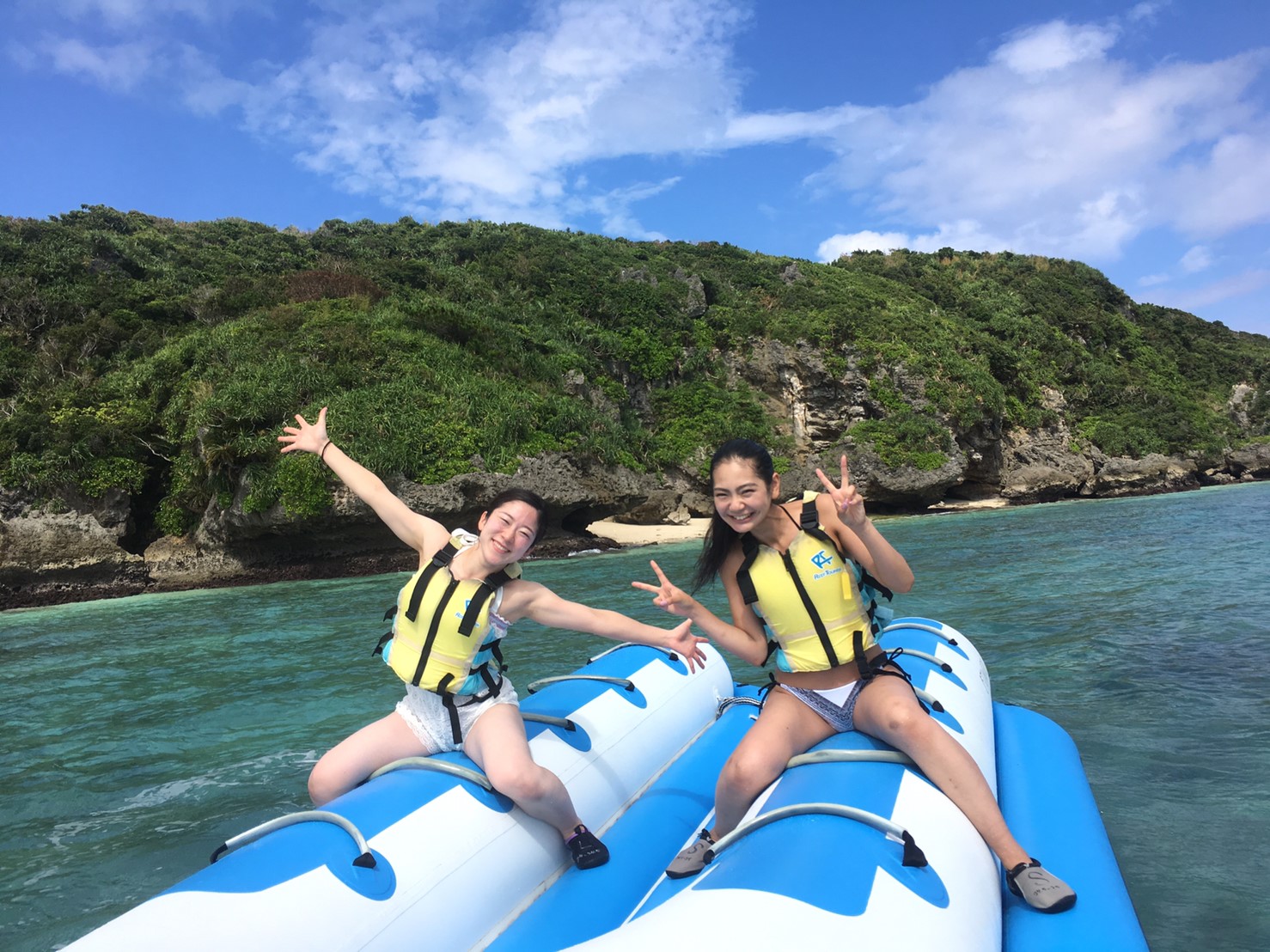 【沖縄・古宇利島・バナナボート】1グループ毎の貸し切りにてご案内!当店一番人気プラン!バナナボートで古宇利島一周プラン カップル、女性、ファミリーに人気♪【直前予約可能】2026年6月30日まで