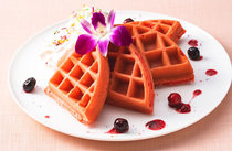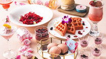 色鮮やかなピンクワッフルをご提供。新鮮なフルーツとふわふわの生クリームを添えるなど、お客様のお好みで多彩なテイストをお楽しみください。関連する宿泊プラン