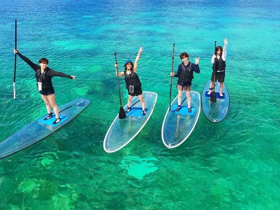 まるで海に浮かんでいる感覚!透明ボードで沖縄の海を満喫