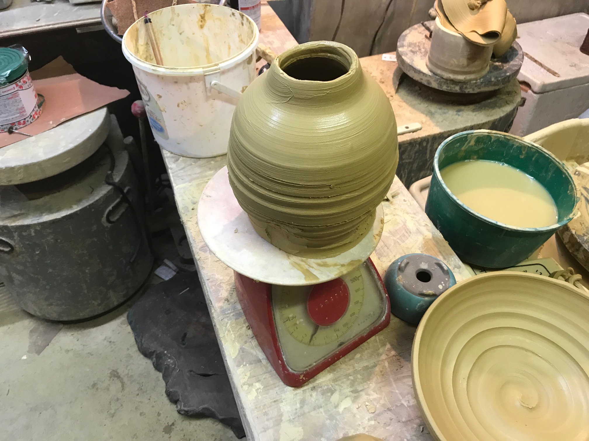 手びねりと電動ろくろで作品を1つずつ作ることができます。