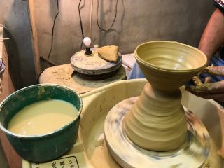 手びねりと電動ろくろで作品を1つずつ作ることができます。