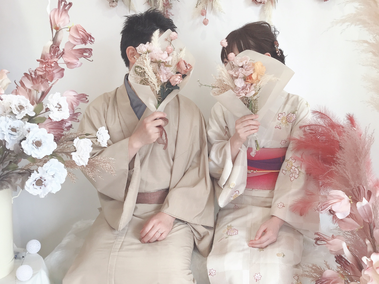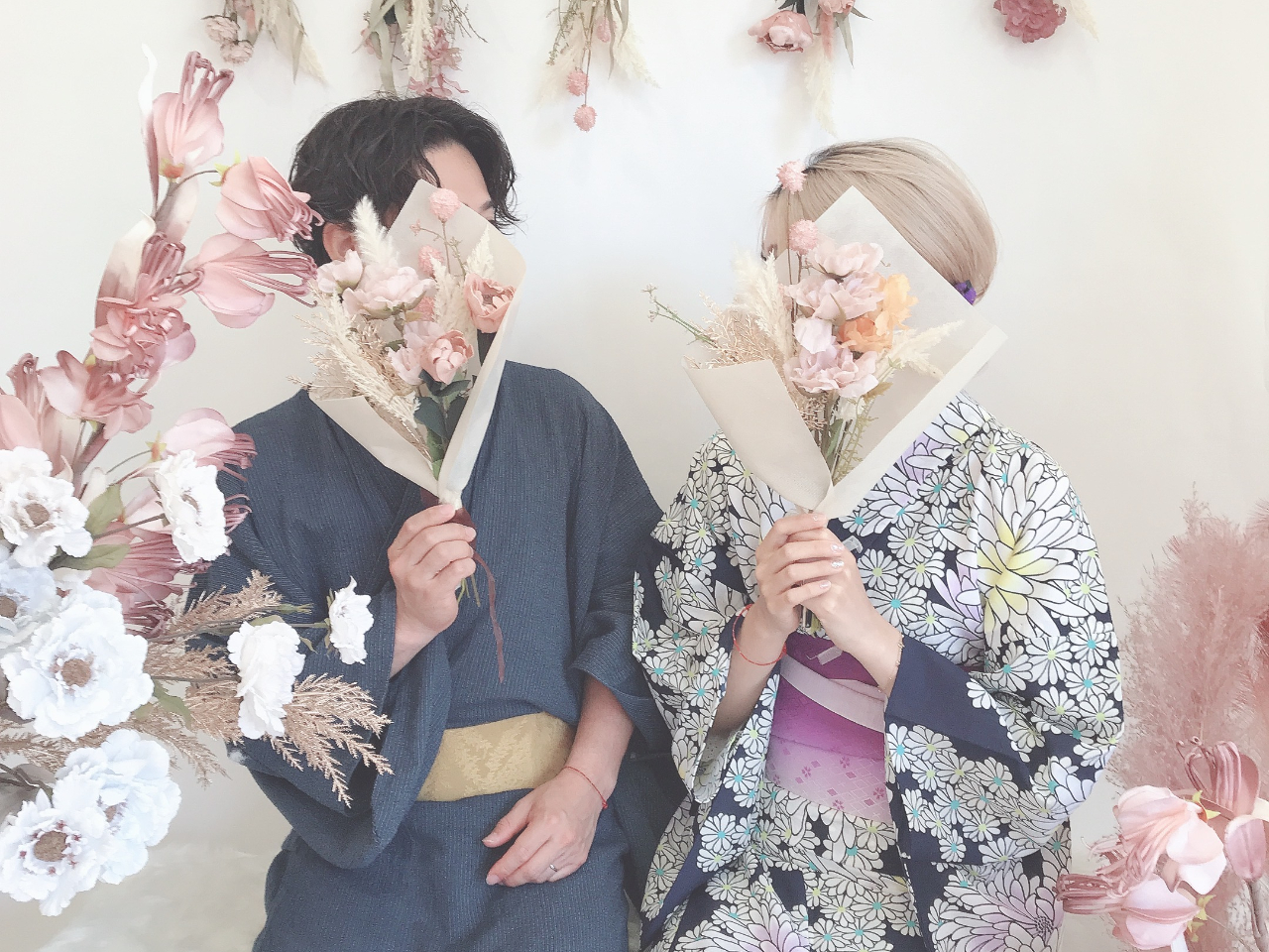 ◇通常価格9,900円の男女カップル着物が5,000円に!!着付け・ヘア・小物全て込