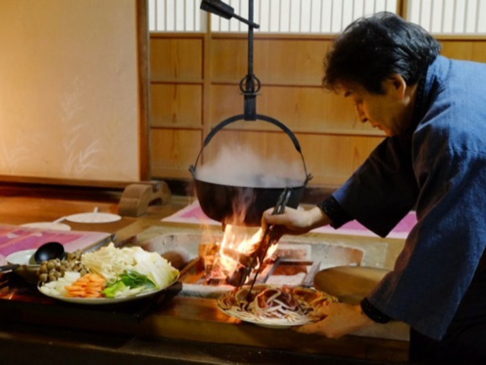 【囲炉裏鍋でのお食事と 薪割り・かまどでご飯炊き・ 焚き火体験】〜500坪の文化財屋敷一棟貸切空間で歴史・文化・自然を体感〜