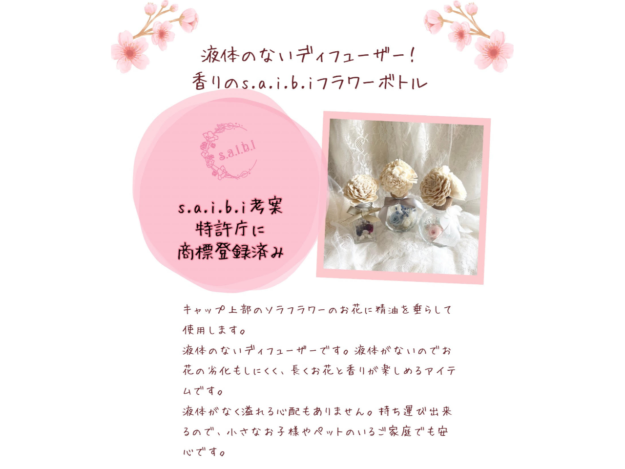 s.a.i.b.i考案商標登録済!液体のないディフューザー「香りのs.a.i.b.iフラワーボトル」を気軽に作ってみませんか。ここにしかない限定品です!液体がないのでこぼれずお花も劣化しずらいです♪