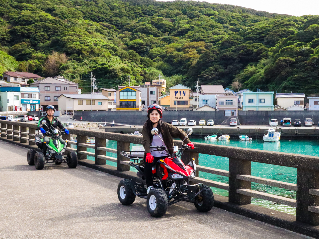 ・あまりの美しさに「船が浮かんで見える」と話題騒然!1,000種類以上の海の生き物が見られるレジャースポット柏島!ほかにも美しい海岸線やのどかな田園風景や寺社など、「四国の端っこ」の田舎町を4輪バギーで風を感じながら、心も体も癒されに来ませんか?自動車ではなかなか行けないレアな場所にもバギーならアトラクション感覚でスイスイ!