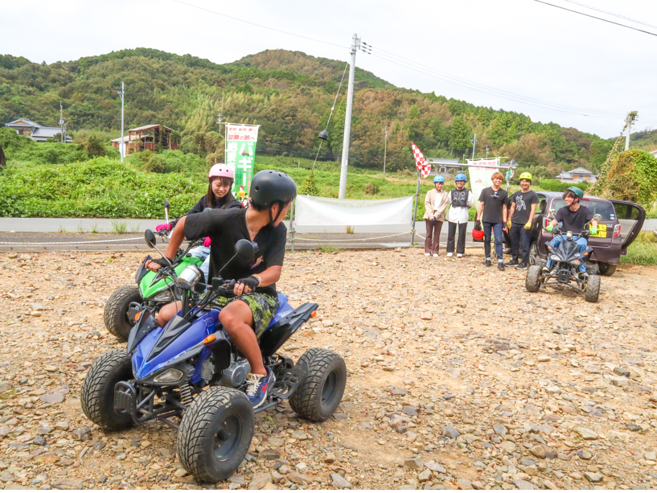 ・ご同行者様でバギーに乗られない方も、参加費(一人プラス2000円)のみでバギーツアーに同行し、一緒に楽しめます(※小学生以下は無料ですが未就学児はチャイルドシートのご持参が必要です) 。ナビゲーションカーに乗れる最大人数がありますのでご相談ください。
