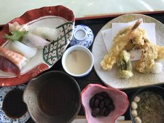 寿司と天ぷらセットのランチを食べました。ホテルの建物は古いですが、静かで落ち着き、ゆったりと食事ができました。
