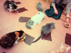 2回母といきました。空間は落ち着いていて猫さんたちものんびりしてました。特にマーチちゃんときくらげちゃんが懐いてくれました。白いスコティッシュの女の子が、元々そういう正確なのか私だけに厳しかったのか、初めてきた時は近くにいただけで睨まれ、2回目来店時は軽く引っ掻かれました。でも怒ってる姿も可愛いかつたです。