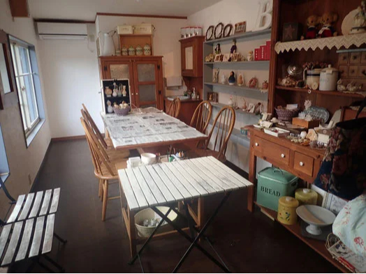 店内には、レース・ガーデン用品・アンティーク・ホーロー・バスケット・ドライフラワーなど