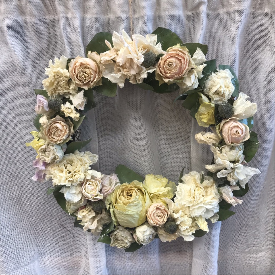 季節のリースやスワッグ作りやハーバリウム、フラワーアレンジなどのワークショップを