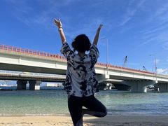 旅行最終日、快晴の波の上ビーチで、笑顔のかわいい先生と、なんとマンツーマンで!気持ちよくヨガをしました。外でのヨガは初めてでしたが、誰もいない沖縄のビーチでのヨガはリフレッシュできました。日焼けしたくないと言ったらちゃんと日陰を選んでくれましたー