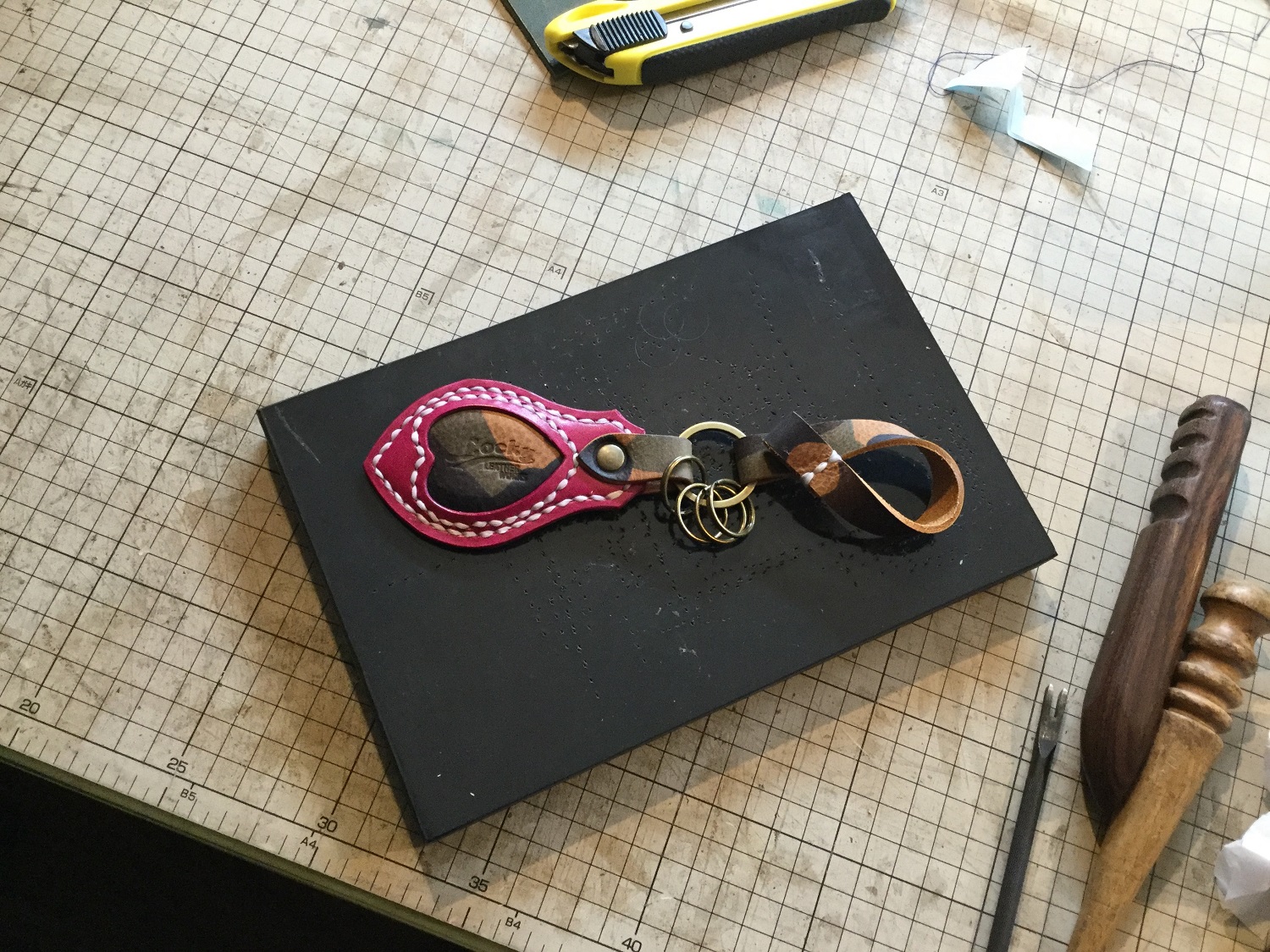 また、自らキーホルダー、コインケースも製作体験する事ができます。全て教えながら製作するので初心者も安心して製作体験が楽しめます。